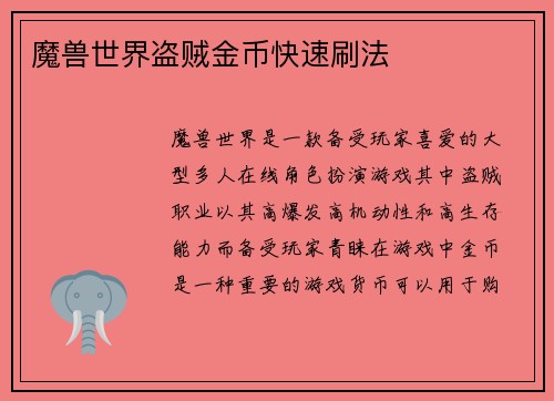 魔兽世界盗贼金币快速刷法